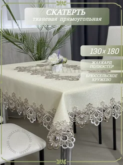 Скатерть тканевая прямоугольная 150х220 см с кружевами
