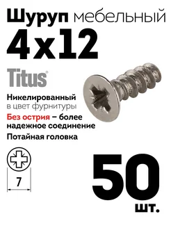 Шуруп саморез 4х12 мебельный, никель, 50 шт