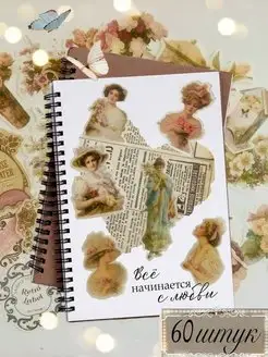 Винтажные самоклеящиеся наклейки для скрапбукинга 60 шт