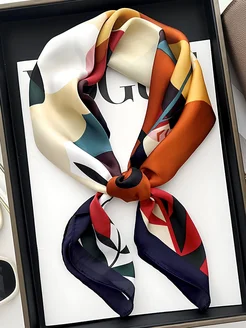 Платок шелковый на голову и шею осенний