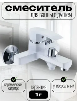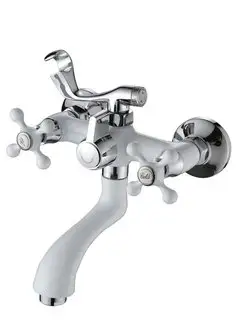 Смеситель для ванны с душем белый двухвентильный