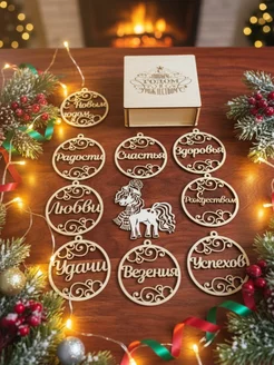 Набор елочных игрушек в деревянной коробке
