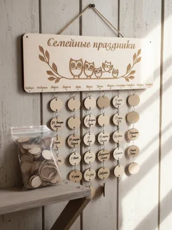 Семейный календарь дней рождения деревянный в подарок