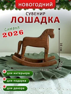 Декор лошадка деревянная 2026 новогодний сувенир