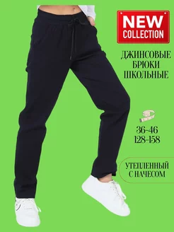 Джинсы брюки утепленные школьные на резинке