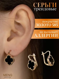 Серьги клевер с черным камнем