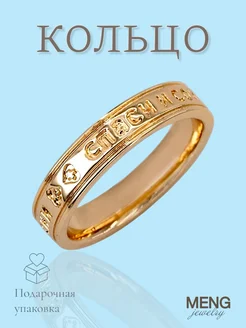 Позолоченное кольцо на палец с надписью Спаси и Сохрани