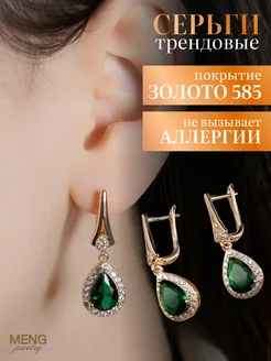 Позолоченные серьги бижутерия с фианитами