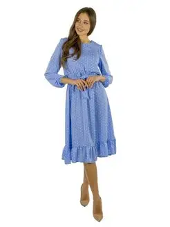 Платье летнее в горох приталенное с поясом легкое Новый год