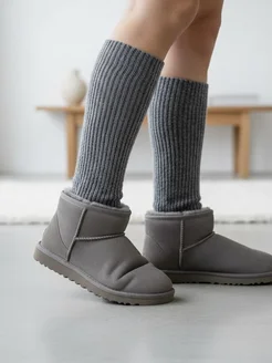 носки женские высокие теплые серые в рубчик
