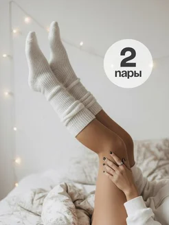 носки женские высокие теплые белые в рубчик