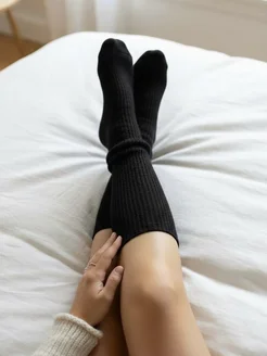 Носки женские высокие теплые черные в рубчик