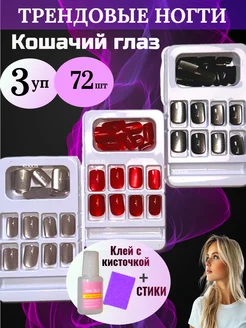 Накладные ногти короткие квадрат Кошачий глаз 3 уп