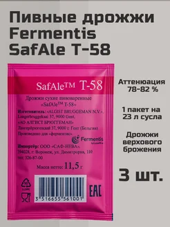 Дрожжи пивные SafAle T-58, 3 упаковки