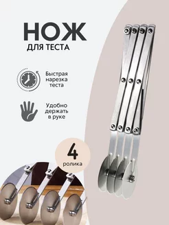 Нож для теста и пиццы 4 ролика из нержавеющей стали