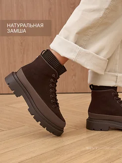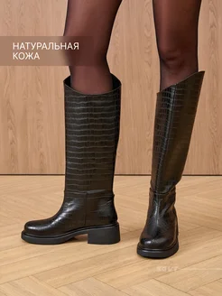 Сапоги трубы без каблука демисезонные натуральная кожа