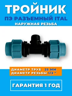 Тройник ПЭ разъемный нар.р. 25х1 2"х25