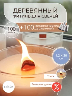 Деревянный фитиль для свечей с держателем 1,4х15см набор 100