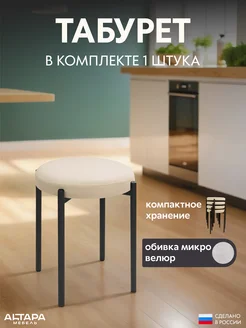 Мягкий табурет для кухни 1шт, велюр, бежевый, ч н
