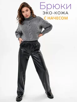 Брюки кожаные теплые на резинке с начесом