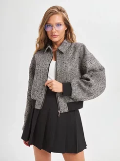 Бомбер укороченный твидовый