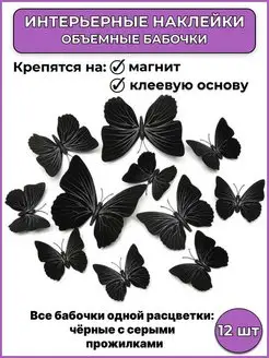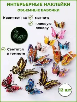 Наклейки интерьерные бабочки с магнитом 3 Д для декора дома