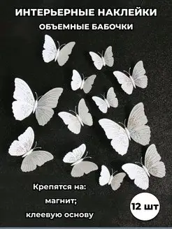 Наклейки интерьерные бабочки с магнитом 3Д для декора дома
