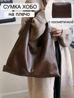 Сумка хобо на плечо большая шоппер с косметичкой 2 в 1