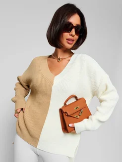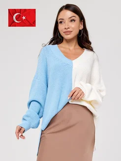 Свитер оверсайз V-образный вырез, удлиненный на зиму