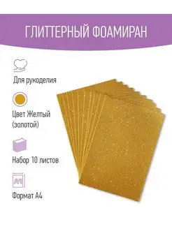 Фоамиран глиттерный золотистый с блестками 1.5 мм 10 листов