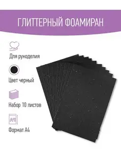 Фоамиран глиттерный черный с блестками 1.5 мм 10 листов