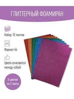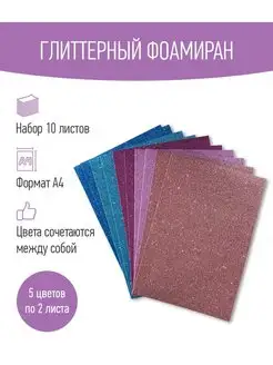 Набор глиттерного фоамирана №5 с блестками 1.5 мм 10 листов