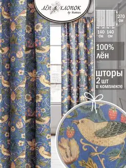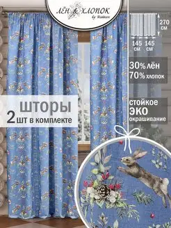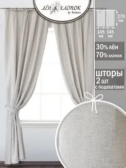Льняная штора в спальню 150х270 см на завязках с рюшами