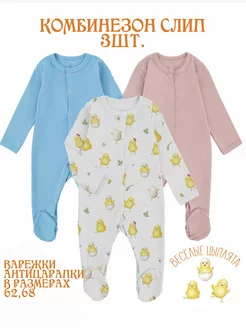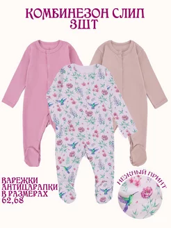 Комбинезон слип для новорожденных с длинным рукавом,3 шт