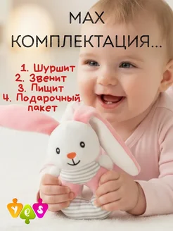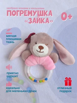Игрушка погремушка для новорожденного девочки мягкая Зайка
