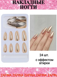 Накладные ногти матовые металлик миндальные с клеем
