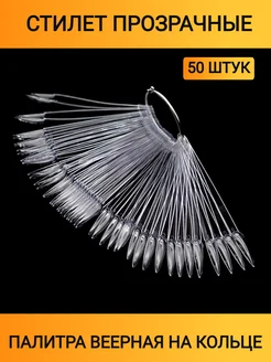 Палитра Веер типсы на кольце прозрачные стилет
