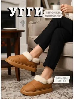 Тапочки-лоферы короткие закрытые теплые с мехом