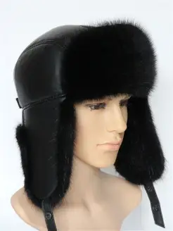 Шапка ушанка ондатровая зимняя из ондатры и замши Пилот