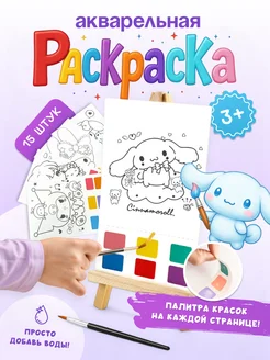 Раскраска акварельная с кисточкой и красками Синаморолл