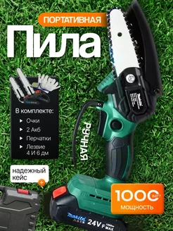 Пила аккумуляторная цепная садовая мини электропила 4"+6"