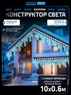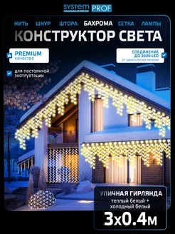 Гирлянда уличная бахрома с мерцанием, 10*0,4м, теплый белый