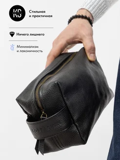 Косметичка женская на молнии, натуральная кожа, размер XL