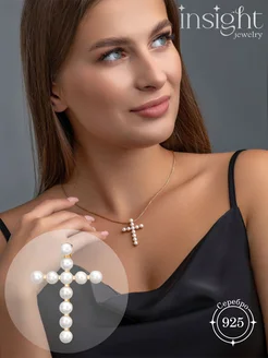 Подвеска позолоченная серебро 925 пробы крест с жемчугом