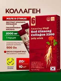 Морской коллаген желе в стиках, с красным женьшенем, 10шт