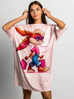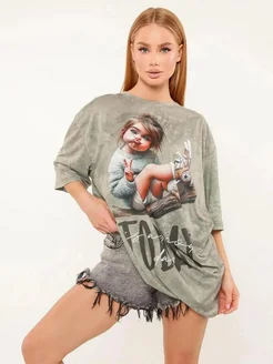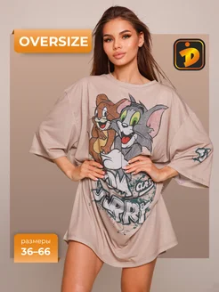 Футболка оверсайз с принтом туника домашняя удлиненная