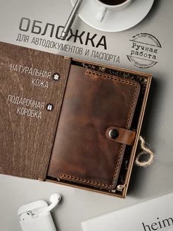 Кожаная обложка для автодокументов и паспорта, бумажник