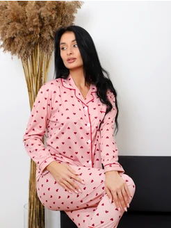 Пижама теплая со штанами и рубашкой с сердечками