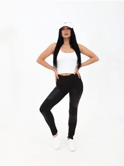 Леггинсы с кожаными вставками