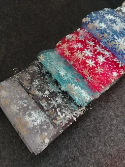 Набор фатина с рисунком снежинки 5 цветов